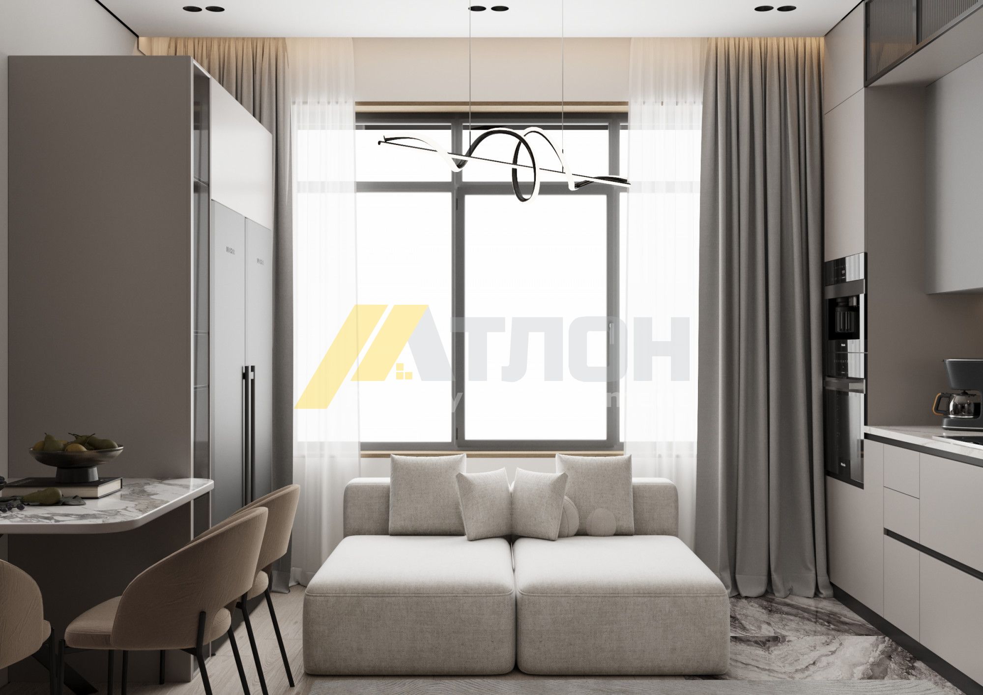 Купили с женой свою первую квартиру. Квартира хоть и небольшая, но хотелось обставить ее с умом. В Атлон обратились не сразу, но по итогу выбрали именно их, потому что именно они захотели взяться за нашу сложную маленькую планировку. Особенно ценно, что работа выполнена с пониманием того, что ремонт это не только про визуальную эстетику, но и про удобство повседневной жизни. Планировка, освещение, расположение розеток, логика пространства - всё продумано так, чтобы квартирой было удобно пользоваться каждый день. Были некоторые сложности с планировкой кухни, как итог она получилась такой как мы представляли, удобной и уютной.