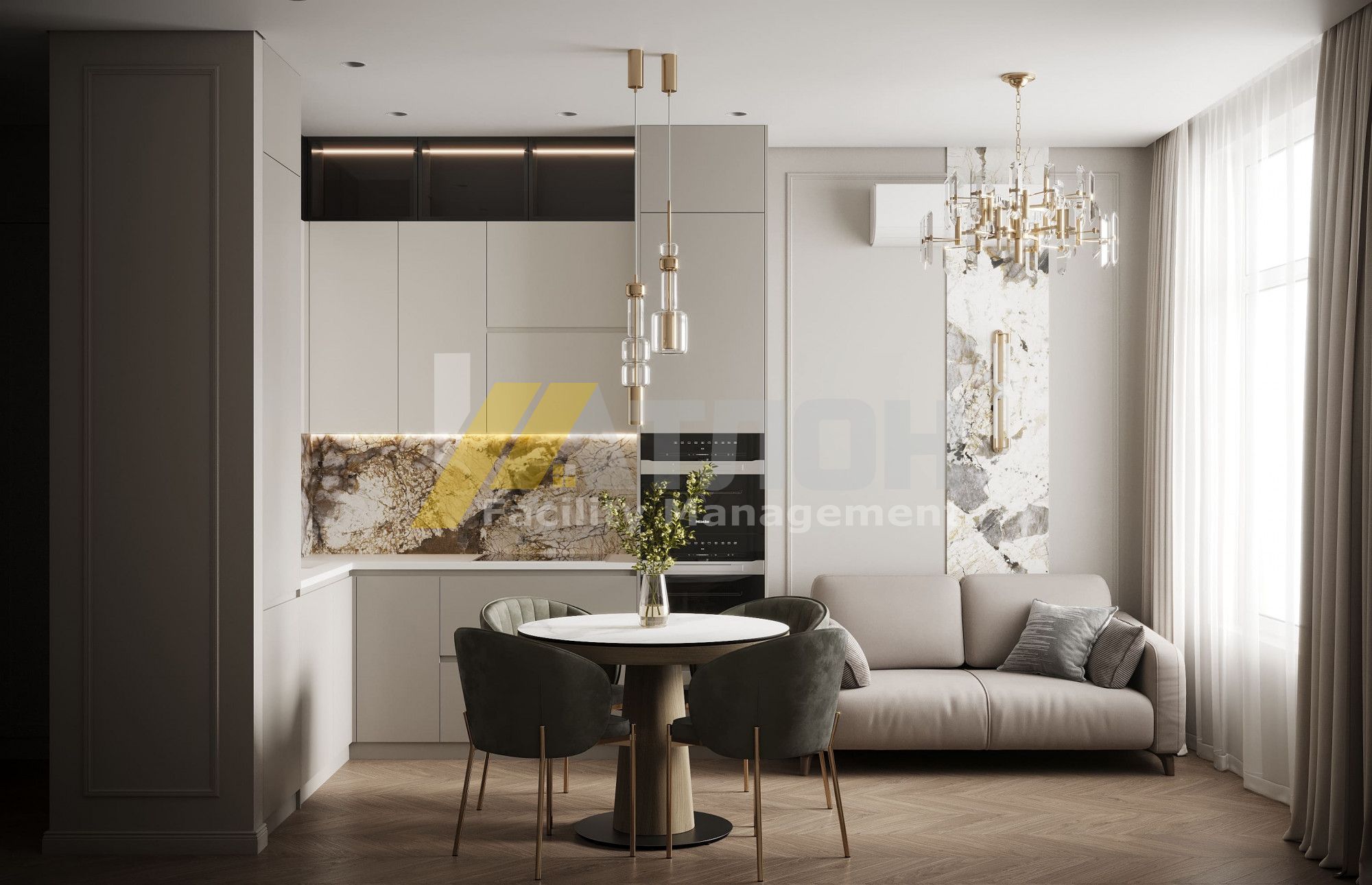 Ремонт начали практически с нуля — квартира в черновой отделке, и нужно было всё: от стяжки пола до монтажа кухни. Долго искали подрядчика, и Атлон ФМ оказались самыми понятными и уверенными ещё на этапе сметы. Не навязывали лишнего, не обещали «всё и сразу», а говорили честно и по делу. Работы шли спокойно, чётко, в нормальном ритме, а результат нас по-настоящему порадовал — получилось современно, практично и очень аккуратно.